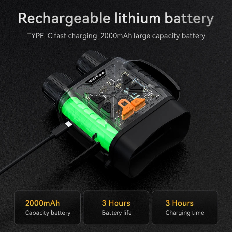 Step into the night with clarity using the 1080P Digital Night Vision Binoculars. Built for outdoor explorers, campers, hunters, and wildlife enthusiasts, this device combines powerful infrared technology with a 2.8” IPS display to deliver crystal-clear images in complete darkness.