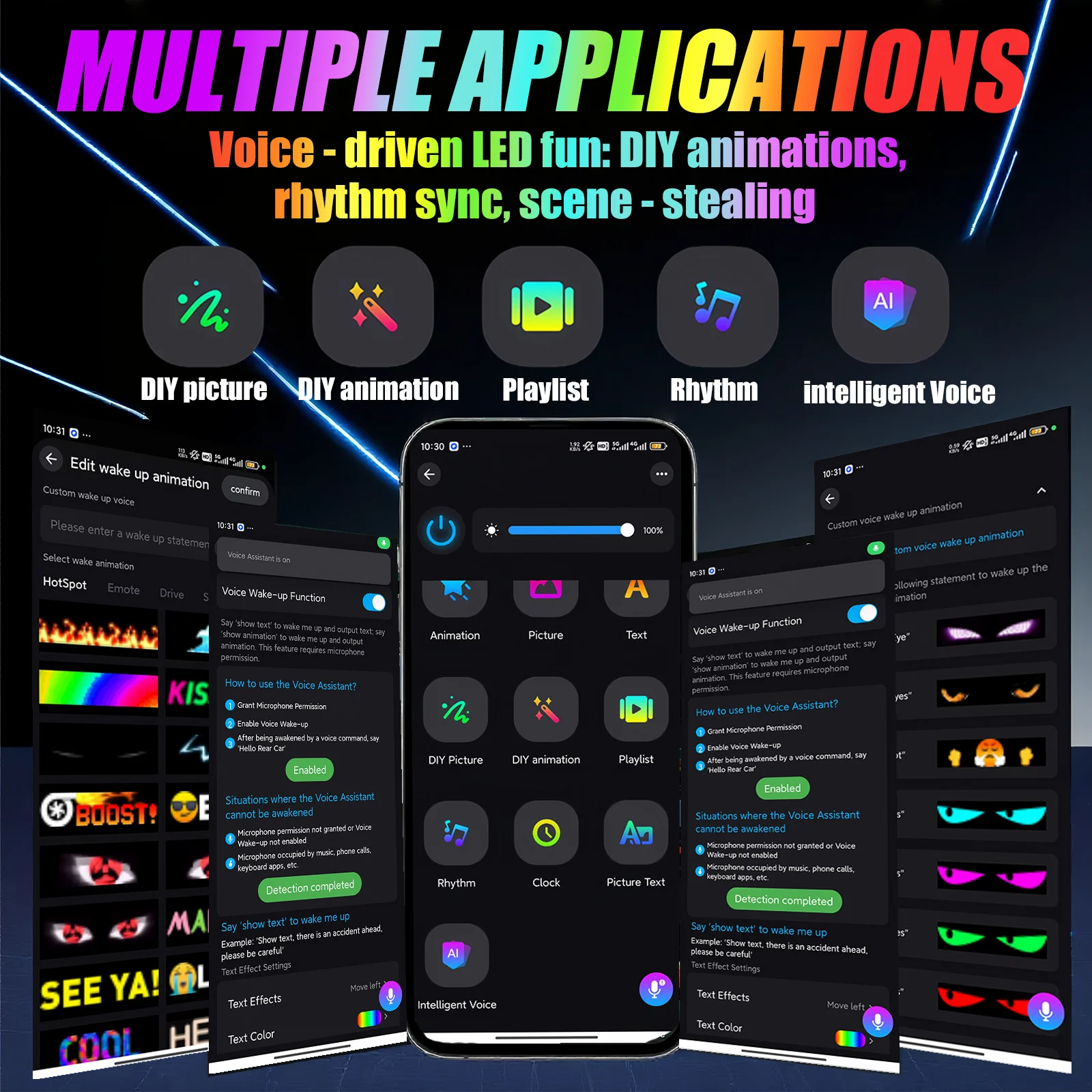 AI Voice LED Matrix Pixel Panel Light | Programmable Car Devil Eyes, Remote & APP Control, USB DIY Display