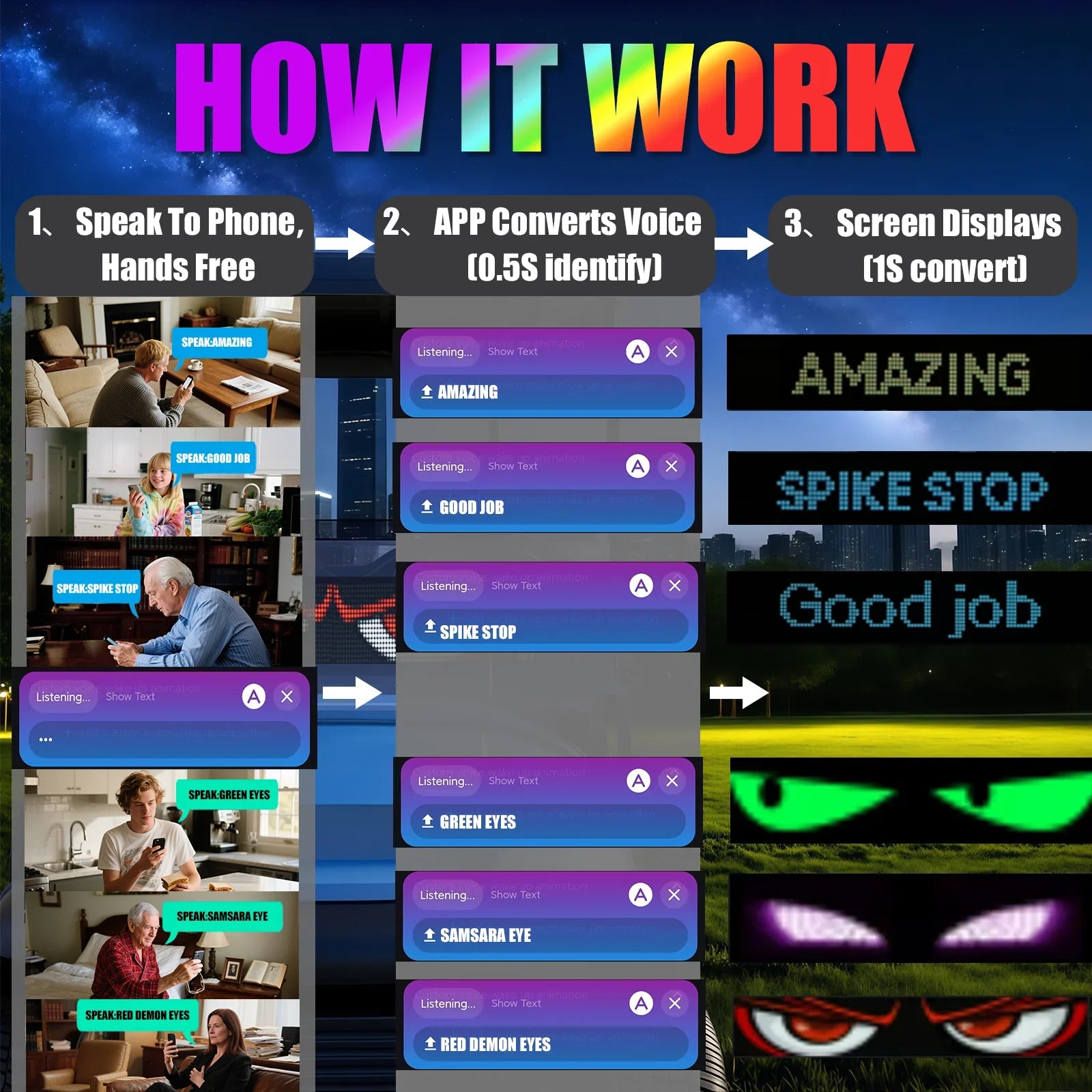 AI Voice Function: Speak text or animation commands via the app to display your message instantly