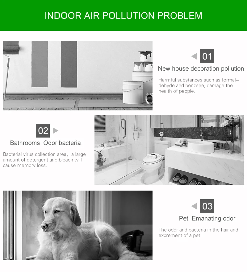 Multi-Purpose Use: Eliminates odors from kitchens, toilets, refrigerators, bedrooms, and smoking areas.