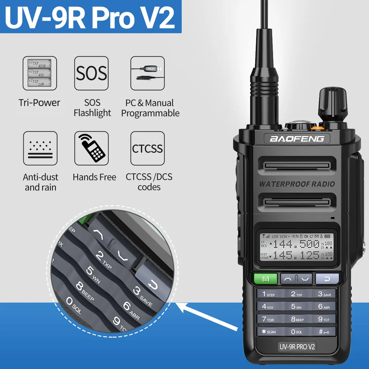 Stay connected anywhere with the Baofeng UV-9R Pro V2, the upgraded, ultra-durable walkie talkie built for professionals, adventurers, and emergency use.