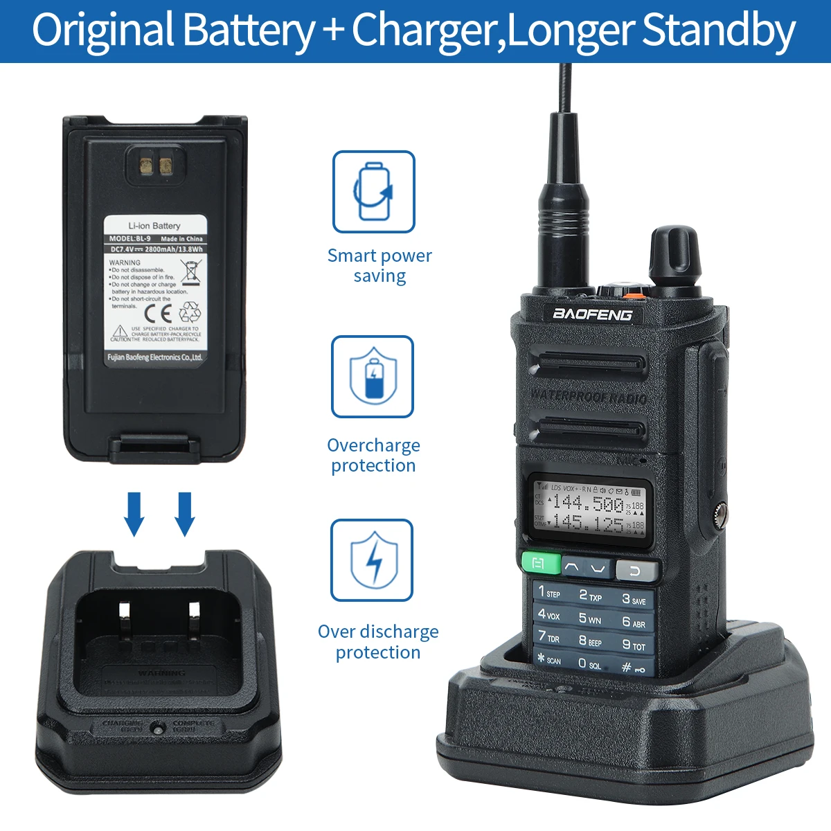 Baofeng UV-9R Pro V2 – IP68 Waterproof Dual-Band Walkie Talkie | Tri-Power, Type-C Charging & Long-Range Ham CB Radio