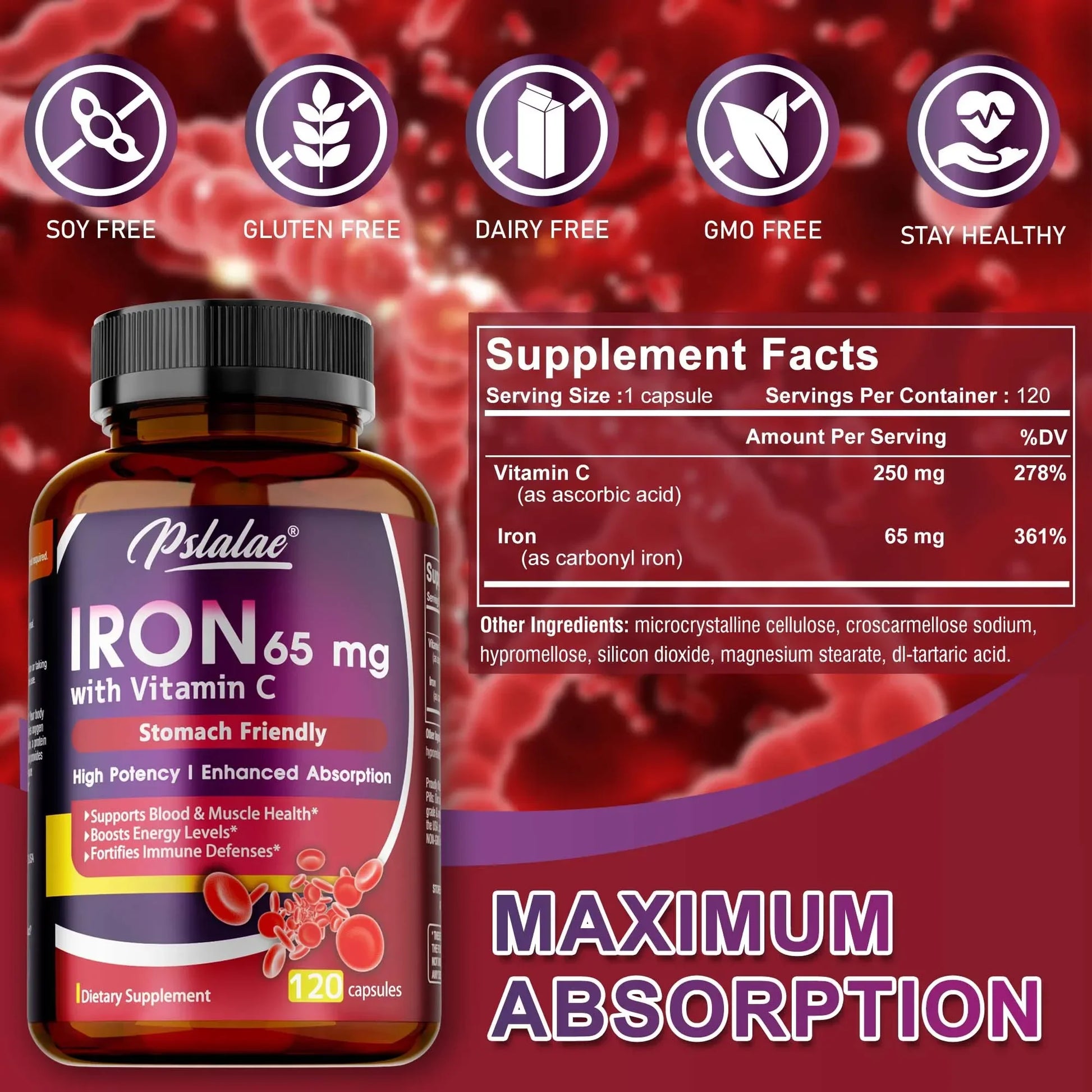 ✨ Iron Supplement 65 mg with Vitamin C – Maximized Absorption, Energy & Immune Support