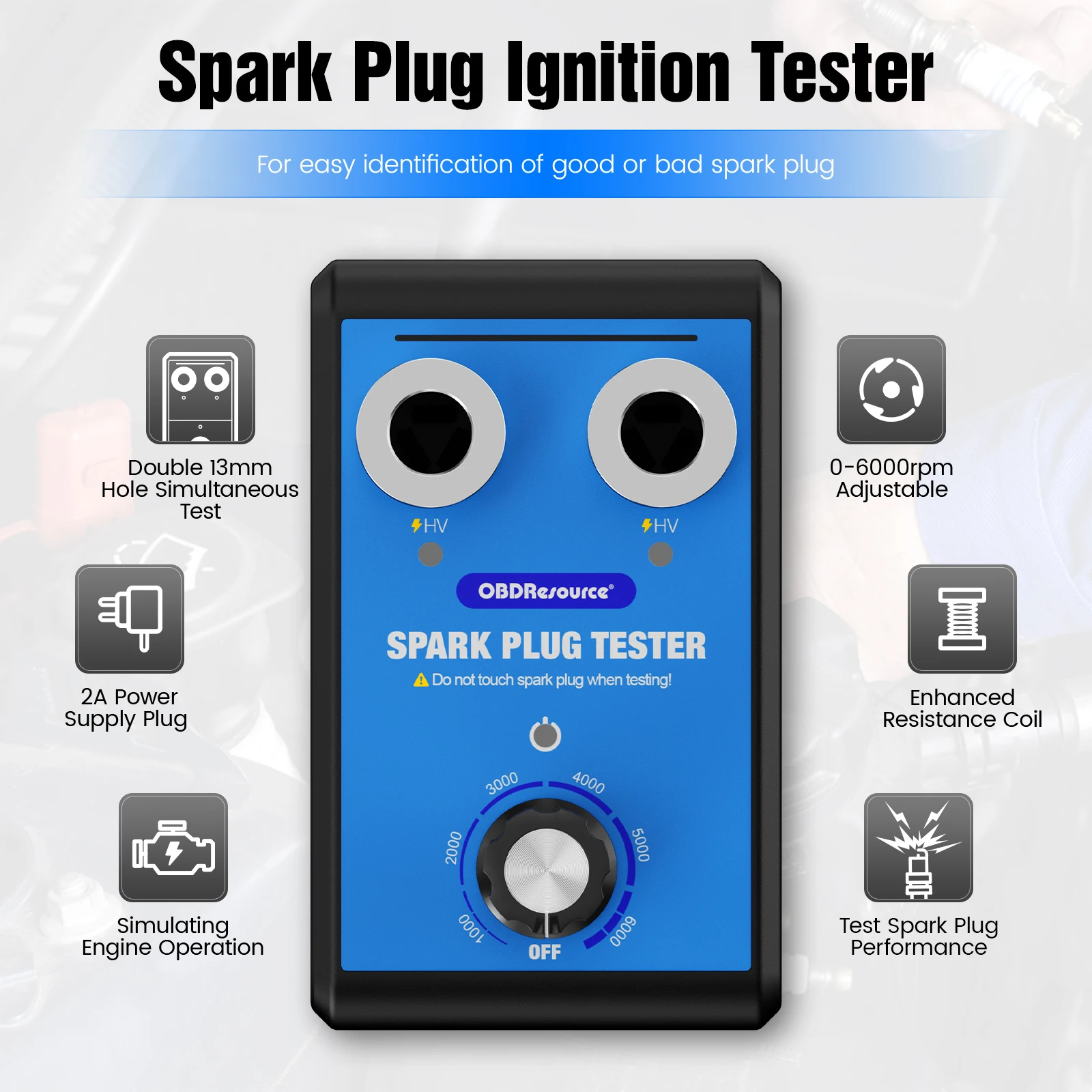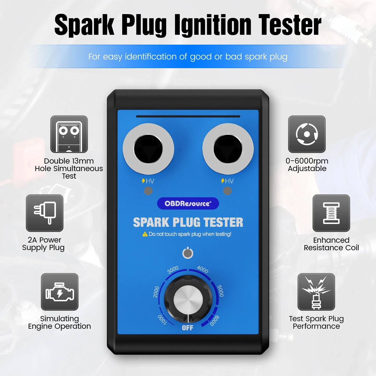 OBDResource Car Spark Plug Tester Pro With Black Board Dual Holes 220V&110V 0-6000rpm Engine Ignition Coil Spark Tester Tool