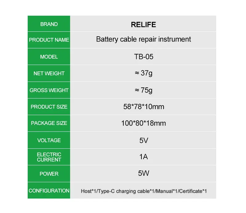 RELIFE TB-05 Battery Cable Repair Instrument Setup-free and Boot-free Adapt To Various Models for IPhone IP8G-16PM Repair Tools
