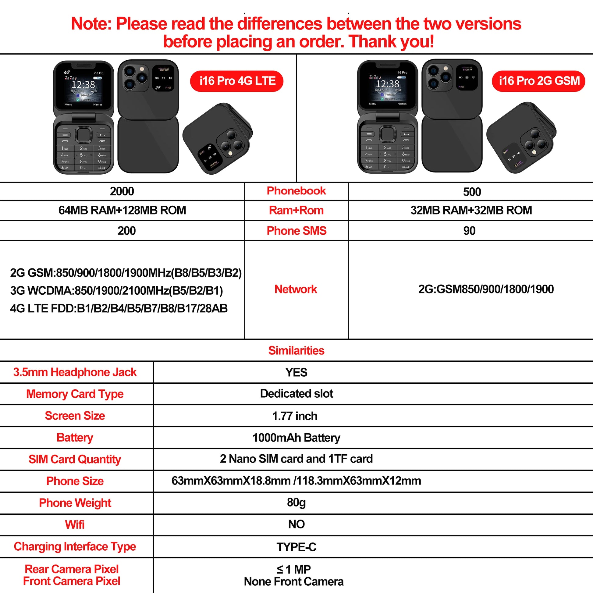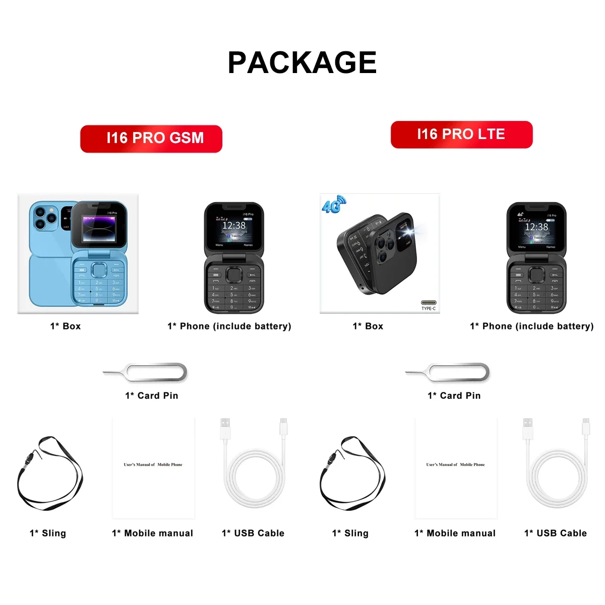 With Dual SIM standby, a bright 1.77” HD display, and long-lasting 1000mAh battery, this lightweight device delivers dependable communication wherever you go. Whether you choose the 2G GSM or 4G LTE version, the i16 PRO ensures stable connectivity and intuitive controls across multiple regions.