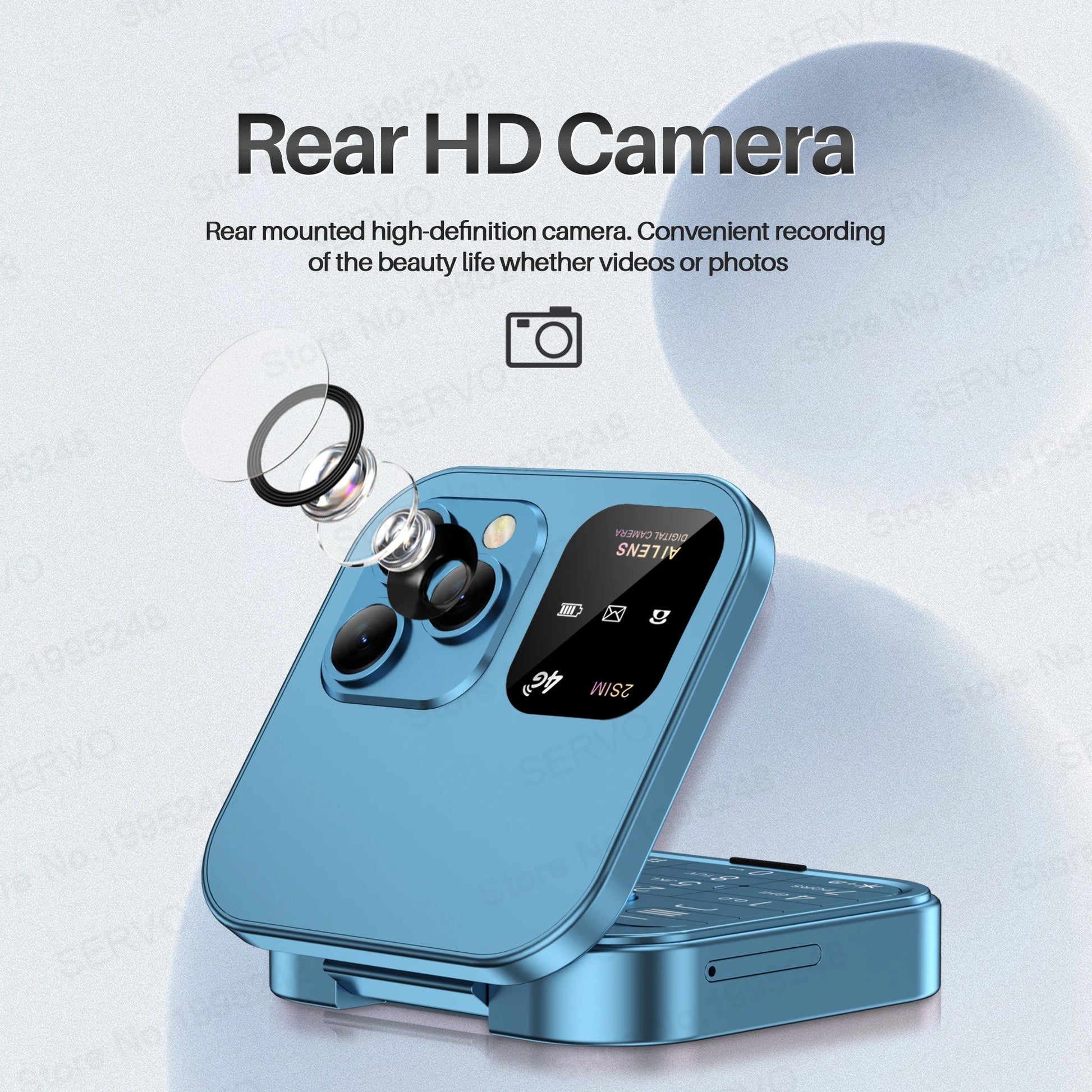 SERVO i16 PRO Mini Flip Mobile Phone – Dual SIM, 2G/4G LTE, FM Radio, Magic Voice, Torch & Pocket Design (Type-C Charging)