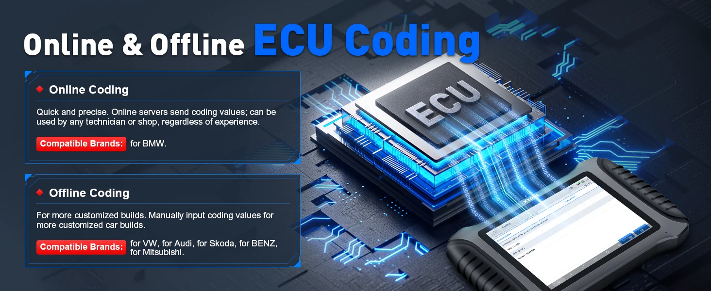 XTOOL InPlus IP900BT newly add ECU Coding and Flash Hidden Functions Lifetime Free Use, Work for VW, for Audi, for Skoda, for BENZ, for BMW, and for Mitsubishi and more to perform offline Coding, Support Reset Adaptive Data, Match Replaced Components, Customize OE-Settings...