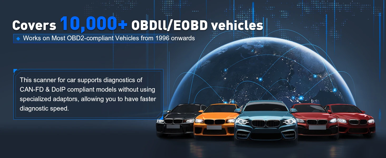 XTOOL IP900BT can work on 200+ car brands, 20,000+ cars globally 12V vehicles after 1996 with OBDII including sedans, light duty trucks, SUVs, Mini Vans.