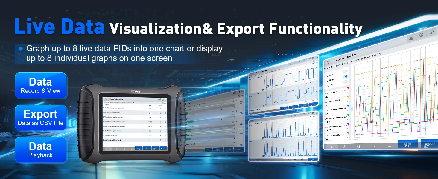 XTOOL InPlus IP900BT diagnostic scanner provides powerful data graphing capabilities. It can show up to 8 individual graphs and merge them all on the same screen for better comparison. You can even export data stream as CSV file for storage and compare over time, which is available to a few thousand fancy scan tools only. It can generate diagnostic report, print it out or share it with friends, family, or DIY mechanics.